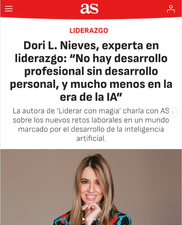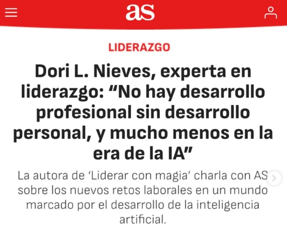 La autora de ‘Liderar con magia’ charla con AS sobre los nuevos retos laborales en un mundo marcado por el desarrollo de la inteligencia artificial. Enlace al artículo en AS – 04 de febrero de 2026